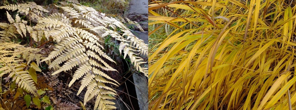 はい、こちらも全部枯れるだけとおもってたんですが、西陽が少しあたる場所に黄色く濃く紅葉してましたね^^