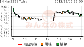 NKは9550円超で推移。昨夜のダウの続伸とドル高と円安を受けての動きと推測されている。