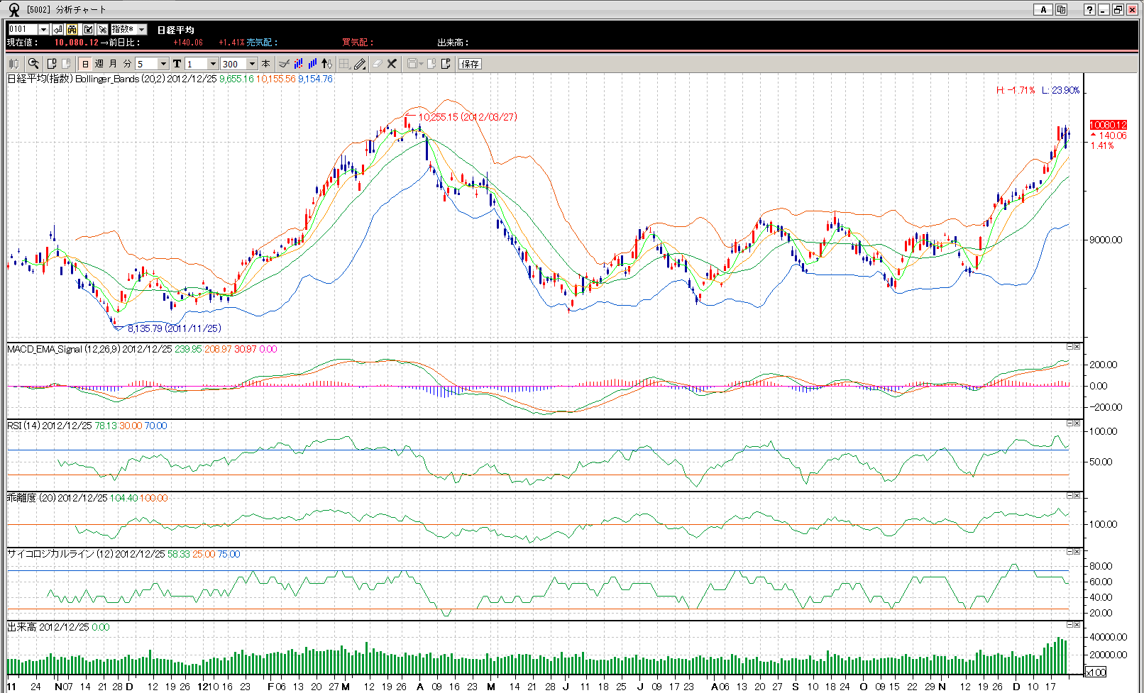 【解説!?】[日経平均 9,940.06(9,737.56)]()は一週間前 状況は2012/12/25時点