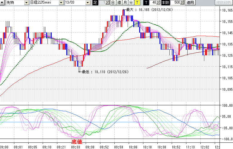 日経225mini先物チャート(上) : 48ティック足