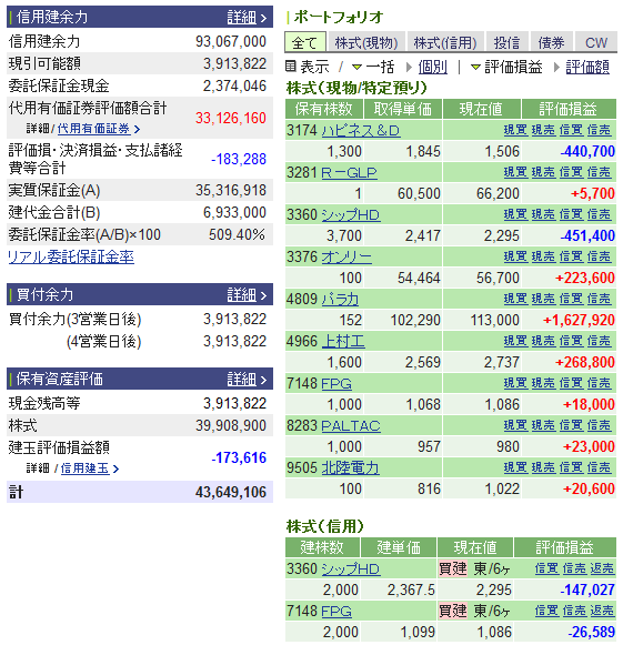 資産評価額:4365万 (前回比 -37万)