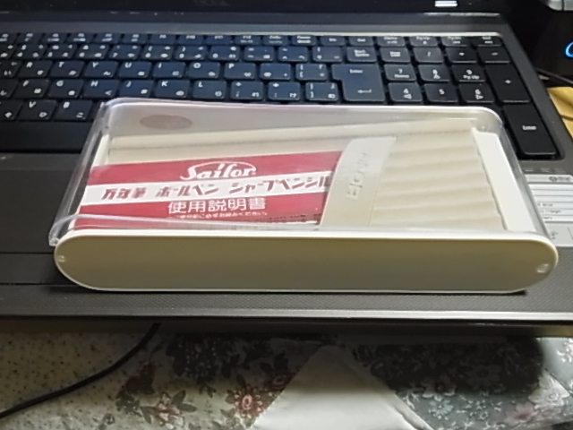 写真には写してませんが古い汎用タイプと思われる商品ケースに入っています。説明書も汎用タイプの奴でボールペン、シャーペンなんかの説明も書いてますね。