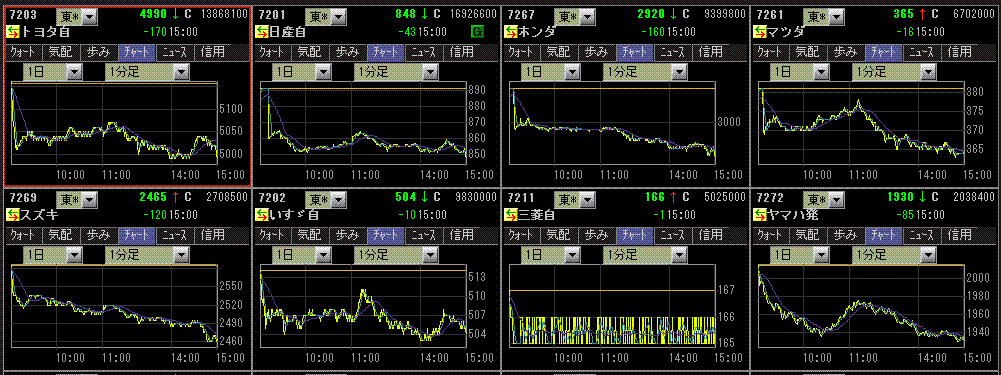日経平均は、昨日先物主導で上げた反動で反落しました。自動車や鉄の動きからすると、指数はもっと下げるかなと思いましたが、みずほFGが妙に強くて指数を支えました。先物の買い圧力も相変わらず強かったです。