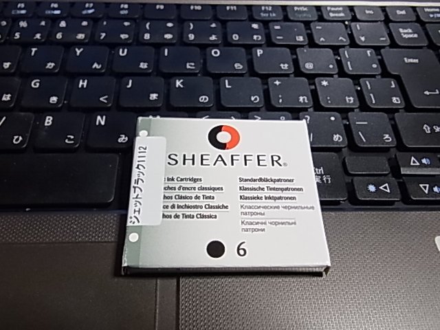 まずシェーファーは確か他のメーカーのとは互換性が無かった筈だから純正のカートッリジ買って来てください。私は今回、普通の黒インク(商品名だとジェットブラック。何この中二病)の物を買って来ました。