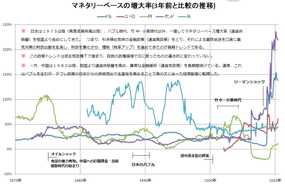 これに対し、新興国が通貨安固定政策を取った場合、バブルになりデフレ化するだけで、バブ