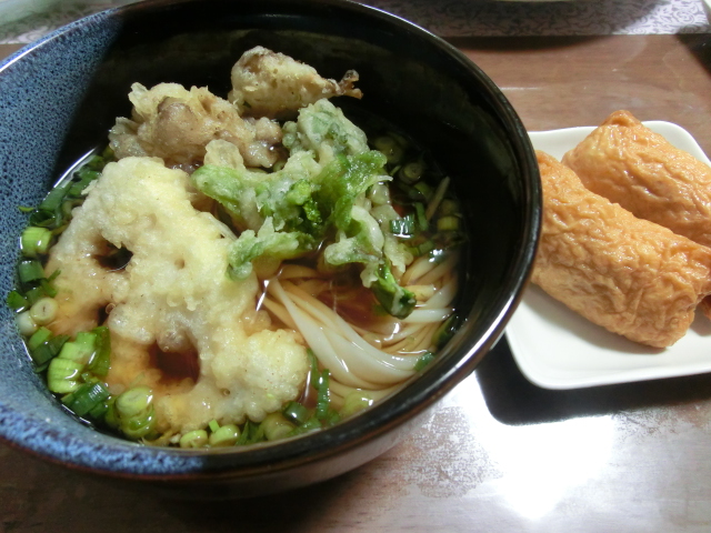 夕食は娘がスーパーにフキノトウとコゴミがあったので天ぷらうどんにしてくれました