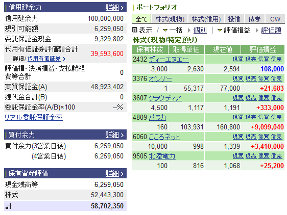 あと,ソフトマックス(3671)のIPOに100株補欠当選した分で