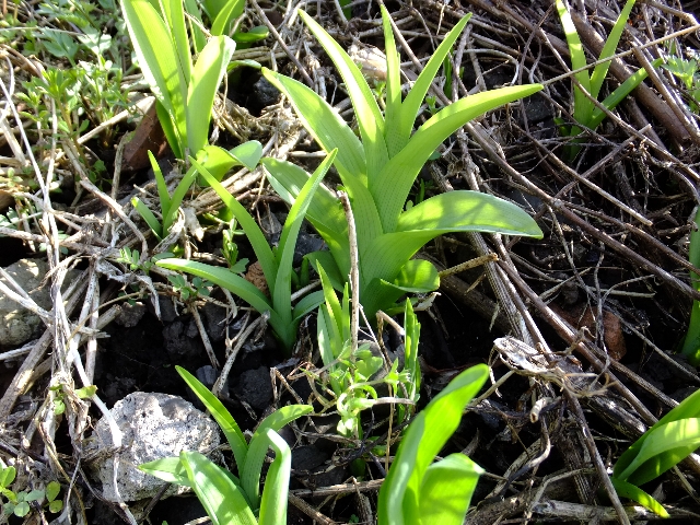 枯れ草の下からカンゾウの芽が伸びだしています