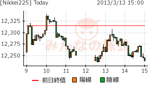 チャート的には、12250円を4回試していることから、明日は再度底固めすれば、反騰すると思われる。ただ、今日の調整は小幅で有り、12000円あたりをいつ試すことになるか気にかかるところでもある。直近の動きからは12200円以下まで下げないと再上昇には至らないと見られる・・・。