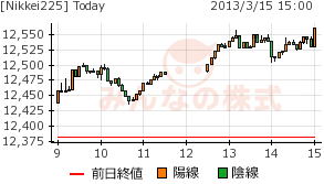 その他 今週は調整局面と見ていたが、過熱感は続いていたようだ。TPP参加意向や日銀総裁人事案など、「風をフカス」アベノミクス戦略はまだ有効に働いているとも考えられる。リスクをどれだけ排除していけるか判断ができない以上、この波はまだ続くと見られているのかも。(自動車・電機等業界の春闘回答により給与・消費の増加を示唆していることも好材料視されている)