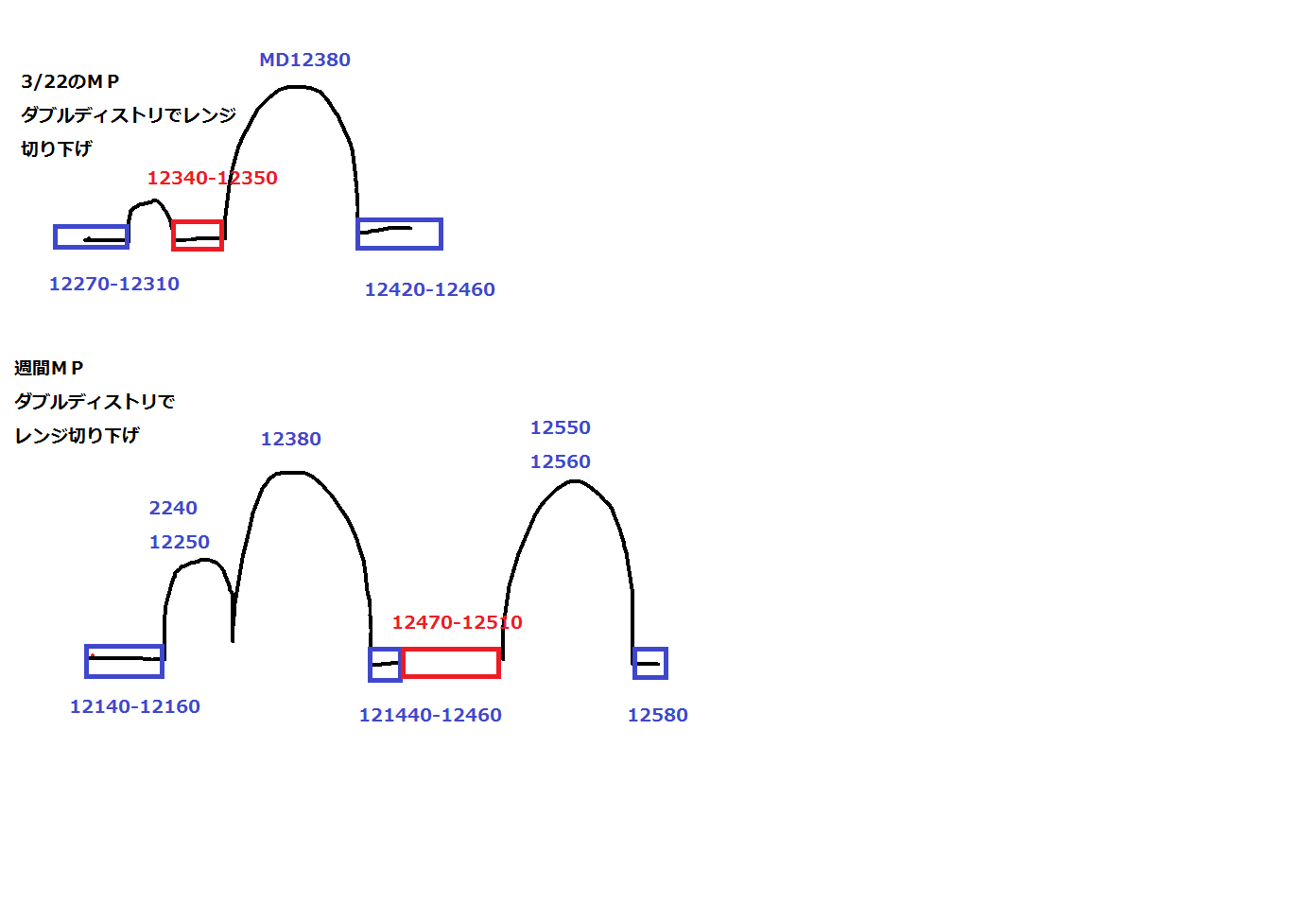 上値 ①12340-12350のレッジ