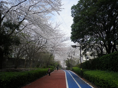 ↓ 駒沢公園の桜。ジョギングやら散歩の人が大勢。
