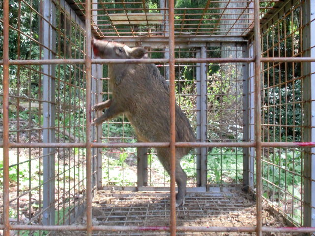 懲りずにというか諦めずに突進し衝突の度に檻が揺れます^^;