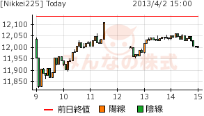 12200円でもみ合い後に終値12135円。