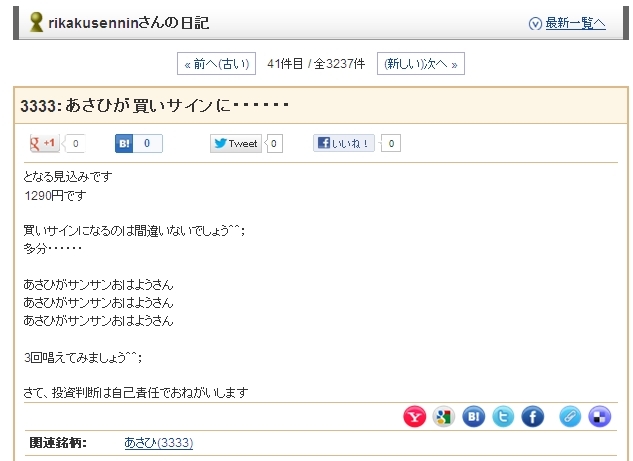 先日の日記(3月12日)で、3333:あさひが買いサインになるのは間違いないでしょ・・・・と書きましたが昨日買いサインになりました