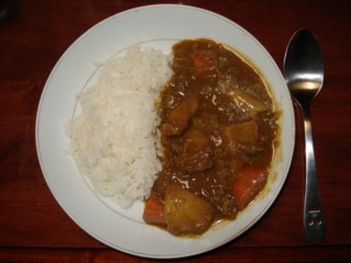 うすーくスライスしたたまねぎをあめ色になるまで炒めて自分でルーを作った、すばらしくおいしいカレーです。