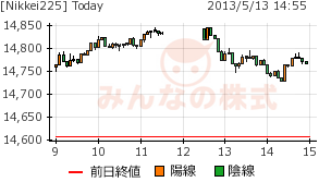 NKは午前の上げと午後からの利確・円レート様子見などで下げたが、NKとしては14850円を目前に足踏みした形となった。
