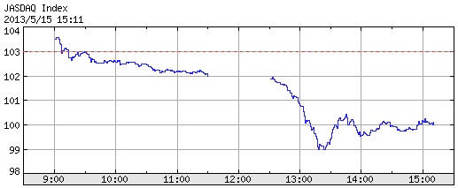 グラフは本日のジャスダック指数推移ですが