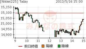 円レートは憶測通りの円高振れしたが$102円を下回らず、株価は再上昇に。が、昨日の終値にわずかに及ばずかろうじて15000円台に。