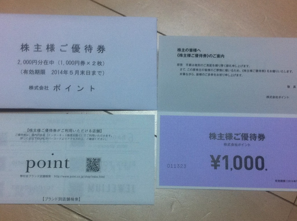 ポイントの優待券が到着しました。