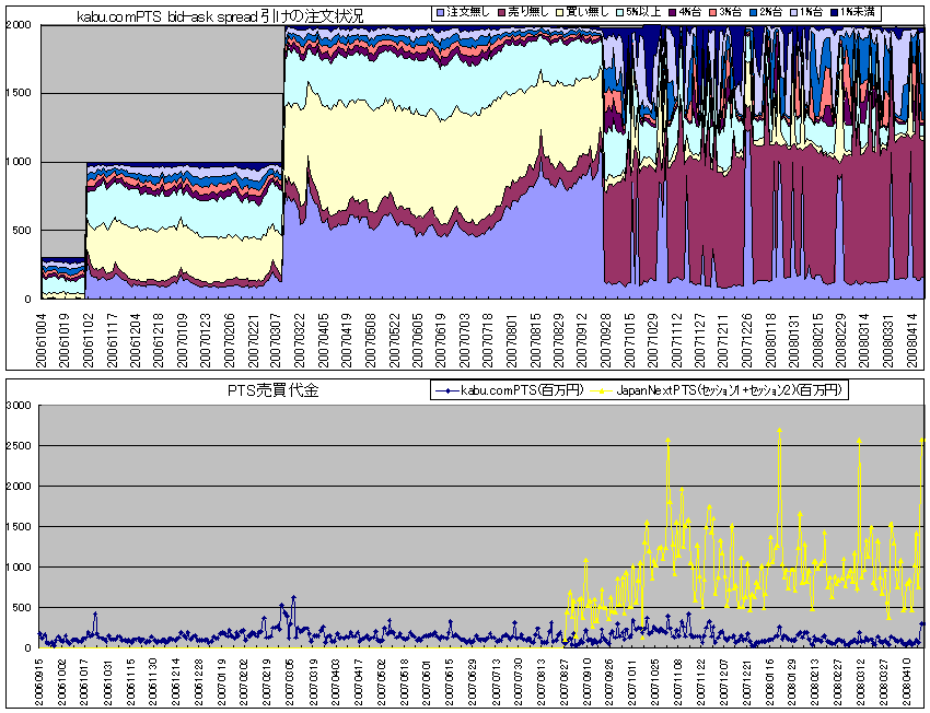 kabu.comPTSの引けの注文状況と、売買代金のグラフです。