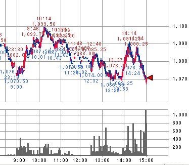 その後は先物の売り方と買い方が交互に戻りを試すかのような展開となった後、午後2時半過ぎからは売り方の先物売りが優勢になり、結局14:00から大引けの15:00までの株価はM字型を描いたジェットコースター相場となった。