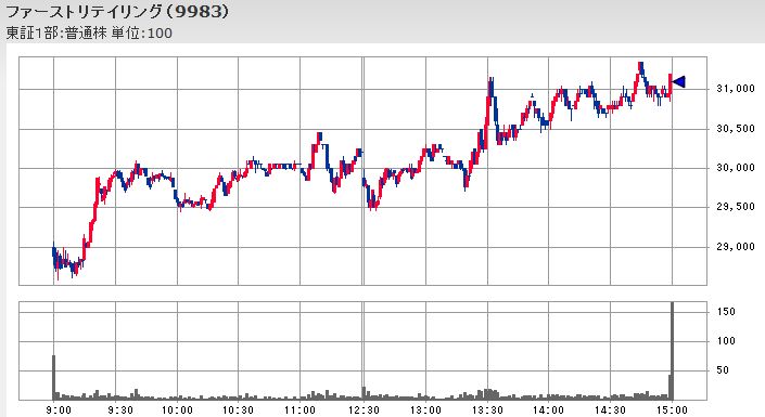 今日もその最後の上昇局面と同様に日経平均寄与度が大きいことで知られているファーストリテイリングやファナックは日経平均株価の下落に逆行しただけでなく、その属する業種の平均株価とも逆になっているのだ。