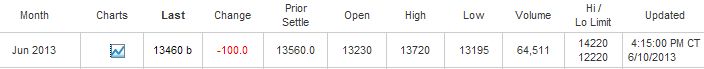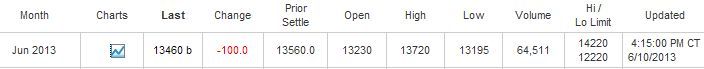 現地時間4:15のシカゴ日経平均は前日比100円マイナスの13,460円で終わったようです。