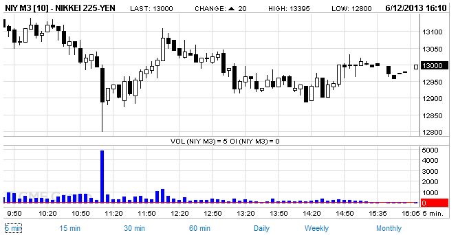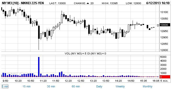昨晩のシカゴ日経平均は13,000円が終値となりましたが、その時間帯のドル円が95.66円から95.96円でした。