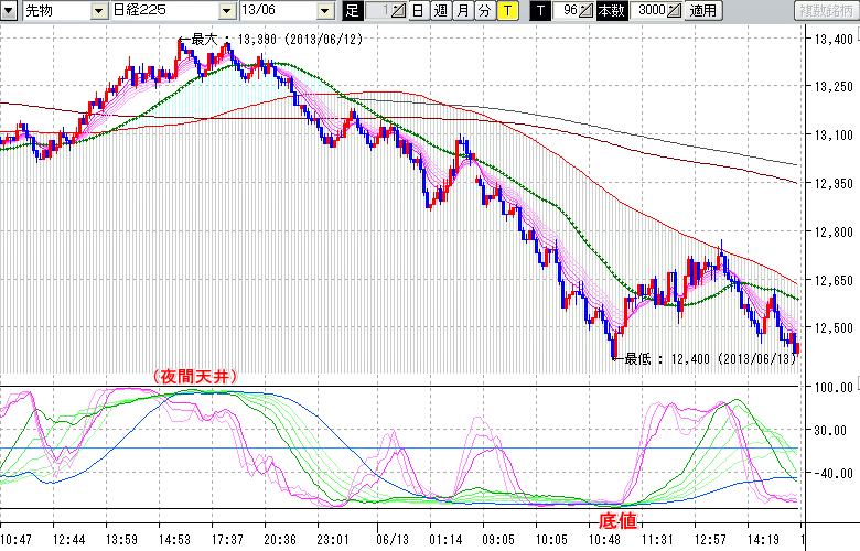 ★6/13 日中の株価の底値★