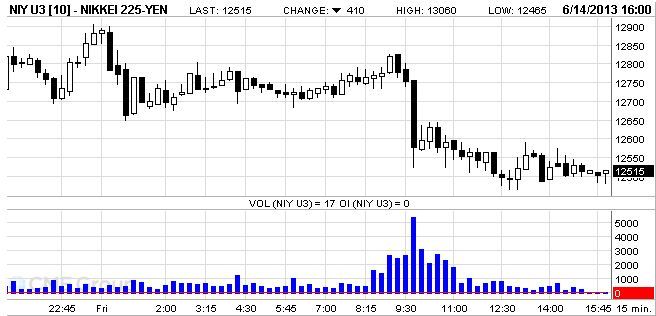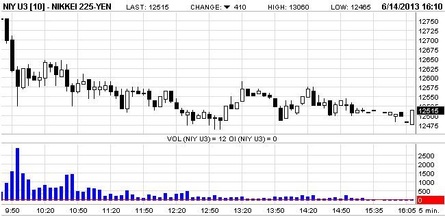 東京市場の日経平均は終値は12,686.52円でしたから、東証終値比からみて-171.52円になり、シカゴ日経平均前日比では-410円となったようです。