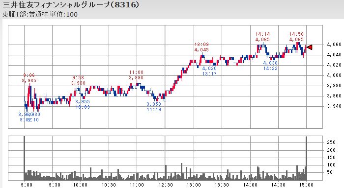 また、11:00頃の仕掛け的な買いと仕掛け的な売りが交錯した際には、V字型に反落させて売り方が買い方の買い上がりを一旦食い止めたように見えたものの、その直後の買い仕掛けで再び上昇へ転じるなど、基本的に買い方優位でザラ場の売買が進んでいます。