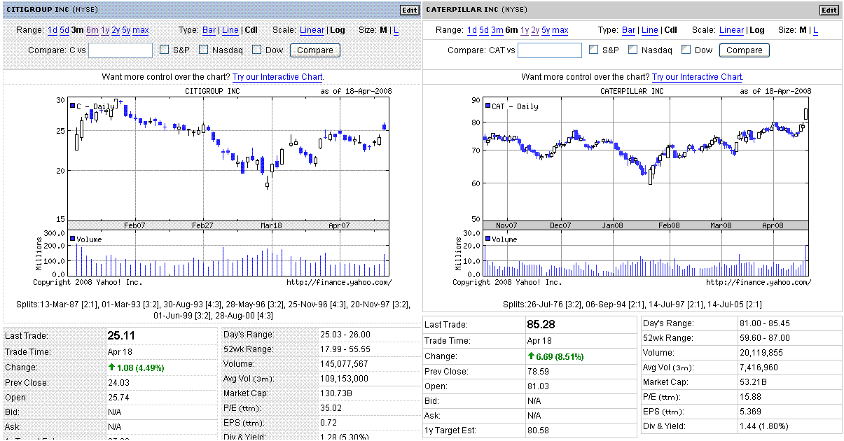 赤字額は市場予想の平均よりも大きかったですが、一部の悲観的なアナリスト予想よりもましだったことや、最悪期は脱したとの期待感からシティ株は買われました。格付け会社による格下げが示すように、良い内容ではないと思いますが、それだけセンチメントが強い、もしくは売られすぎだったということでしょう。