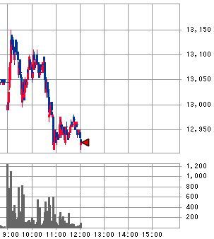 しかし、9時代前半は買い方の仕掛けと推測される出来高の増加を伴った上昇が見られますが、その後おおむね9:45頃までは売り方の仕掛けで下落した後、特に大きな仕掛けらしいものもないまま13,100円まで値を戻しています。
