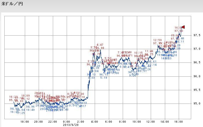 6月20日の東証一部は円安効果で1.3%の下落