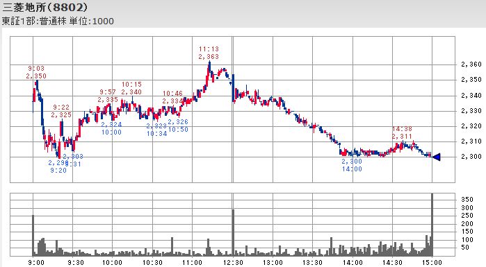 これに対して三菱地所は前日比-66円の2,300円と3%弱の下落となっています。