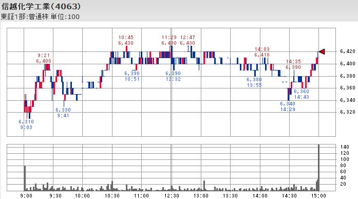 3社共に大引けの出来高が急増して朝の寄付きよりも大きくなって本日最大となると共に、直前より終値が急上昇しており、最後の攻防で買い方が優位となっていたことが共通しています。
