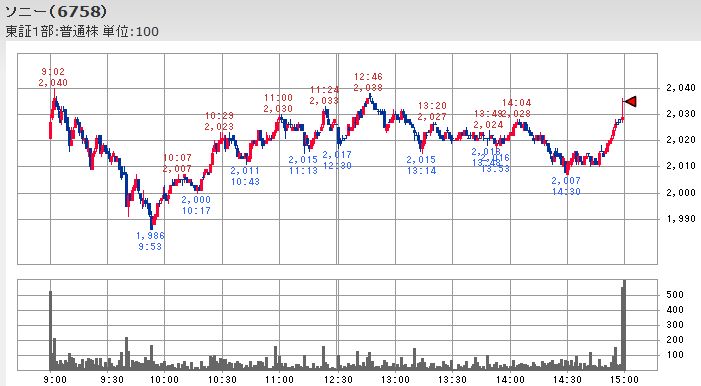 今日はソニーと日立は朝の寄付きよりも大引けの出来高が大きくなって終値が直前より急上昇しており、有名で機関投資家好みの大型株に対して最後の株価上昇を狙った買い仕掛けが行われたと思われます。