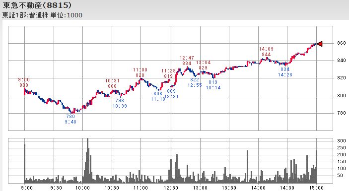 不動産大手3社について見てみると、三井不動産は前日比+245円、三菱地所は前日比+212円、東急不動産は前日比+65円と何れも日経平均を大幅に上回る上昇率となっています。