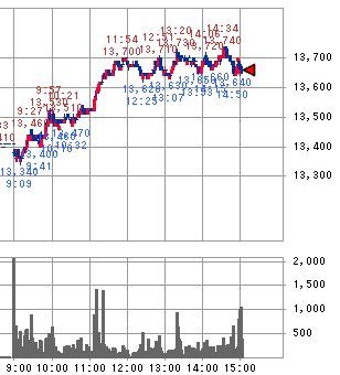 本日の東京市場は昨晩のシカゴ日経平均先物終値13,395円にさや寄せする形よりも前日の東証終値13,213.55円から大幅上昇で始まりました。