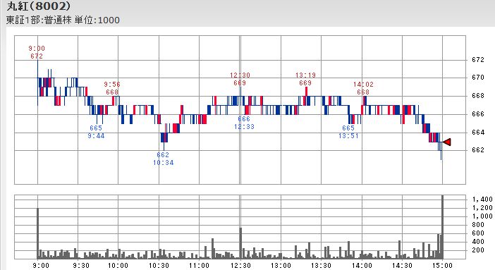 むしろ、それを逆手に取られて自動車メーカー、大手電機メーカー、大手総合商社、大手保険会社、三井・三菱グループの主力企業といった国内機関投資家が大量保有している銘柄が14時台後半から大引けに掛けて急速に売り込まれて下落しており、あたかも売り方が自分の空売りの価値を高めようとドレッシングの売り!?を行ったように見える部分すらあります。