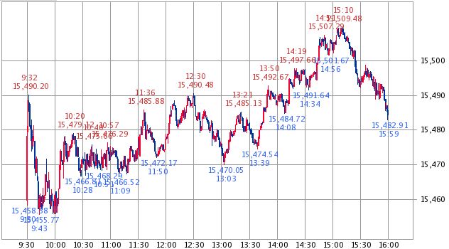 NYダウが米企業在庫GDPへの寄与度も低下したものの5月は小幅増がエコノミスト予想と同じであったのに対して、6月の米小売売上高は前月比+0.4%増と市場予想の+0.8%増と自動車を除く売上高は変わらず経済成長に減速の兆しが見えたましたが、シティグループの好決算を手掛かりにNY時間16:00(シカゴ時間14:00、日本時間3:00)終値で15,484.26ドル(7月12日:15,460.92ドル、7月12日比+24.34ドル)とと香港ハンセン指数やシャンは総合指数が上昇したのを受け、7月12日の東証の終値14,506.25円より上昇したと形となっています。