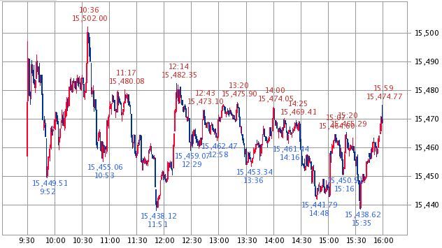 その頃のドル円が99.5円(前日:99.1円)くらいでしたから為替は前日の東証終値14,615.04円の頃のドル円が99.3円より僅かに0.2円の円安ドル高となった影響のようです。