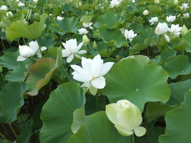 帰り道で白い花ばかりのハスの田んぼを発見し写真を撮りました