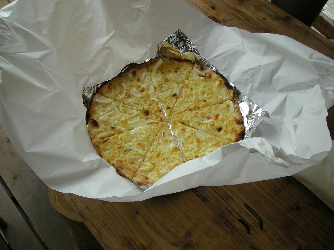 昨日はcacaoをつれて石釜パンの工房「雪bolo」へ行ってピザを食べてきました。家族3人で一枚はオニオンのピザ、もう一枚は春キャベツのピザ、どちらもおいしかった。タバスコをかけなくても、鷹の爪が入っていてピリッとしていてよかった。