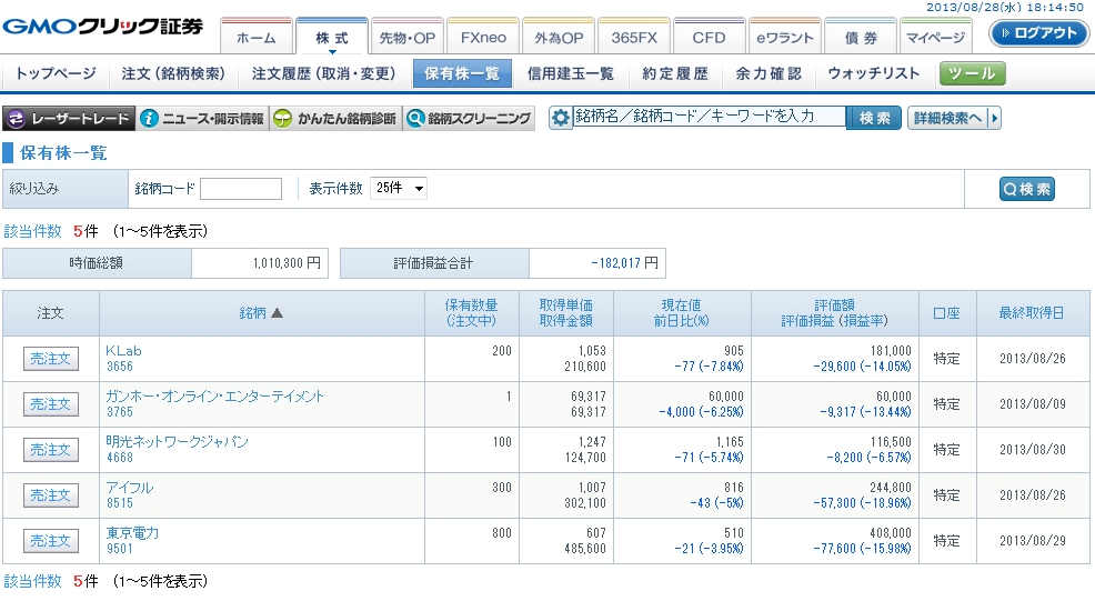 急にシリアの問題が緊迫したこともありましたが、それにしても悲惨すぎます。株自体が7,900円の損失で手数料が460円と合計-8,360円。株主優待でもらえるクオカード3,000円分なので、差額でも-5,000円以上になっております。。。