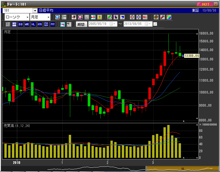 8月最後の東京市場、日経平均株価は反落し日経平均の月足は上髭陰線となった。