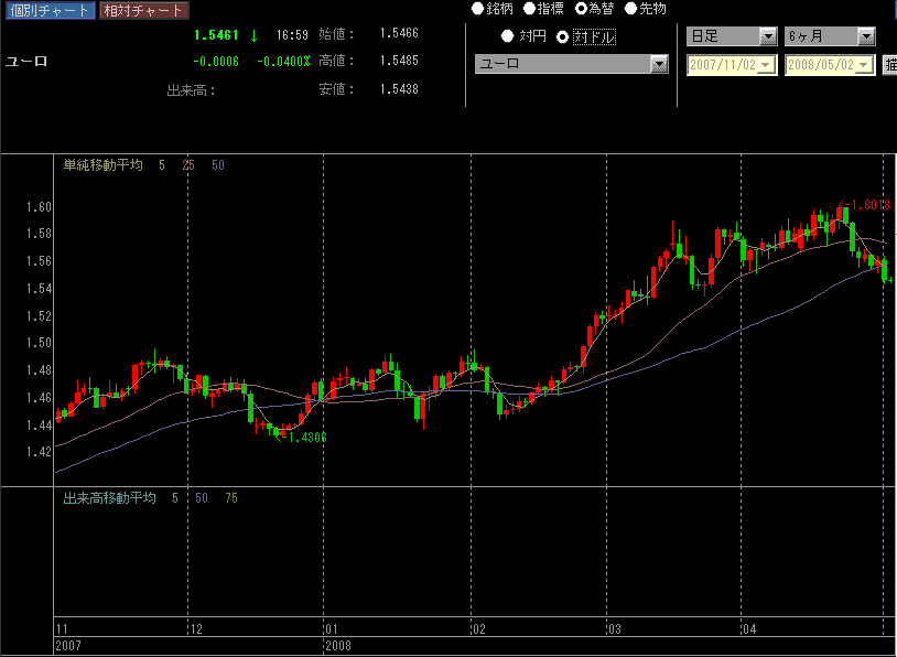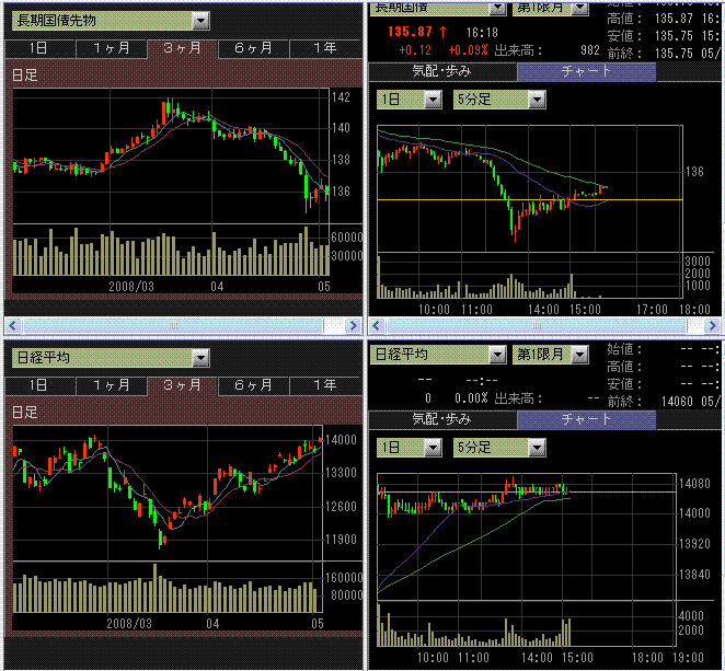 米株は大幅高。マクロ経済指標への反応はあまりなかったのですが、UBSによる半導体セクターの投資判断引き上げやシマンテックの好決算からハイテク株が強くて、ナスダック指数に引っ張られる形で、全体相場も高くなった感じです。金融不安の後退や年後半の景気回復への期待から、リスクマネーが株式市場に流れ込んできているのでしょう。原油価格は大幅下落、長期金利は低下。
