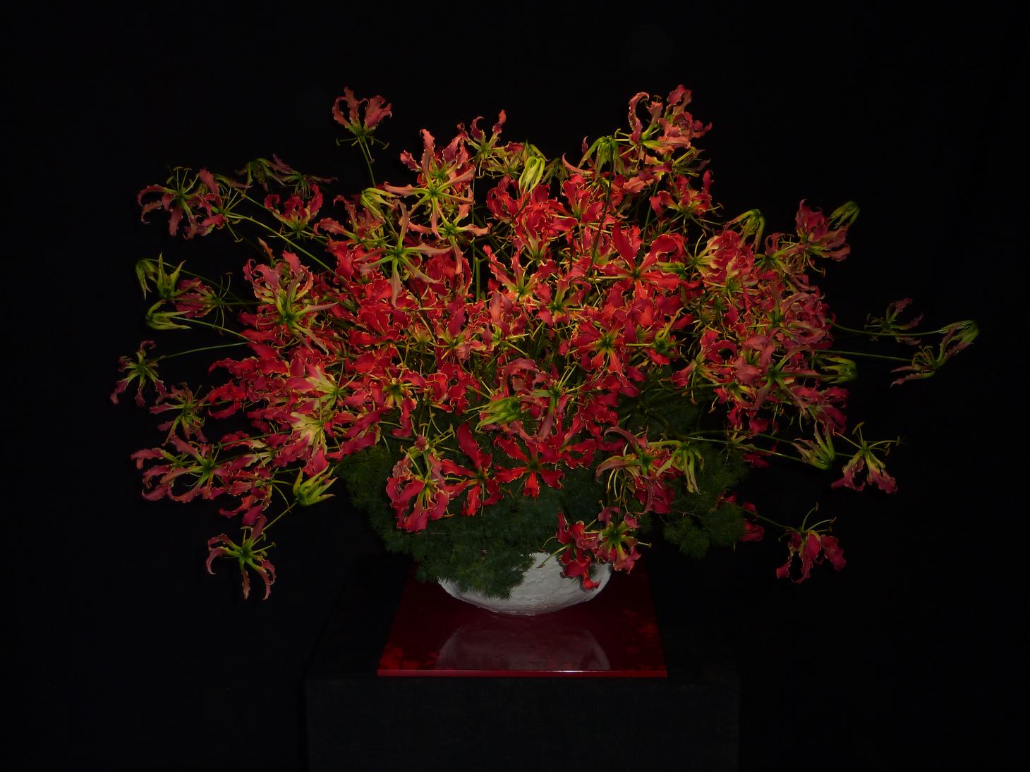 (右) いけばな野外展 小原流 (バイクは川重のものでした)