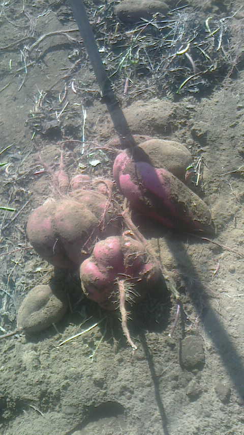 いま畑にはサツマイモが出来ている。昨日掘って見たら赤い色した「鳴門金時いも」が育っていた。